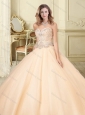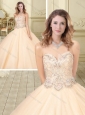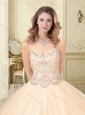 Lovely Big Puffy Champagne Perfect Quinceanera Dress with Beaded Bodice