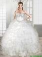 Lovely Big Puffy White Quinceanera Dress with Beading and Ruffles