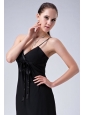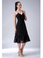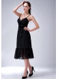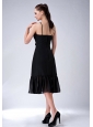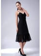Lovely Black Column Straps Bridesmaid Dress Ruch Tea-length Chiffon