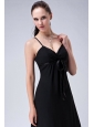 Home >  Bridesmaid Dresses >  Simple Bridesmaid Dresses > Lovely Black Column Straps Bridesmaid Dress Ruch Tea-length Chiffon