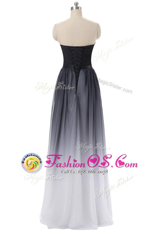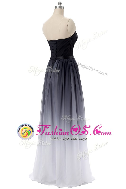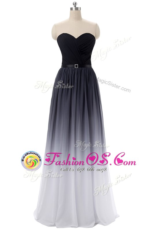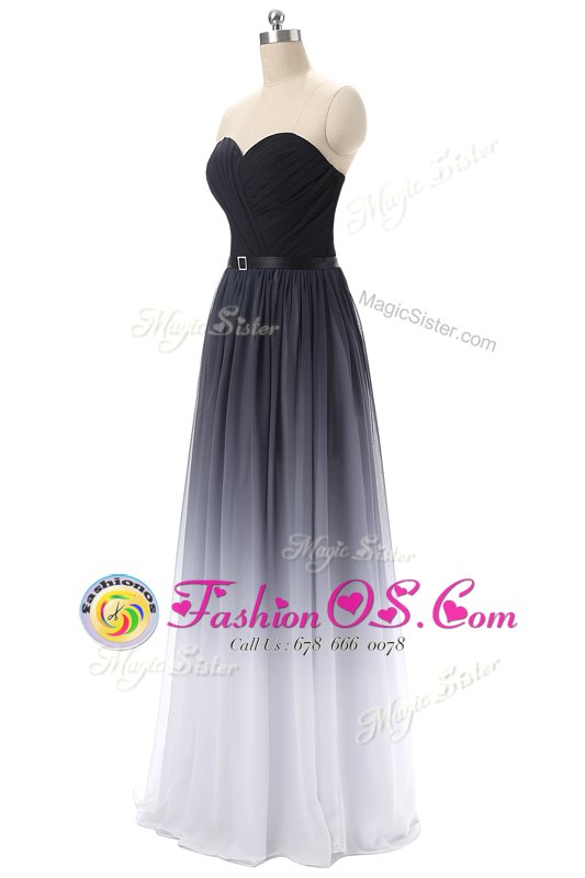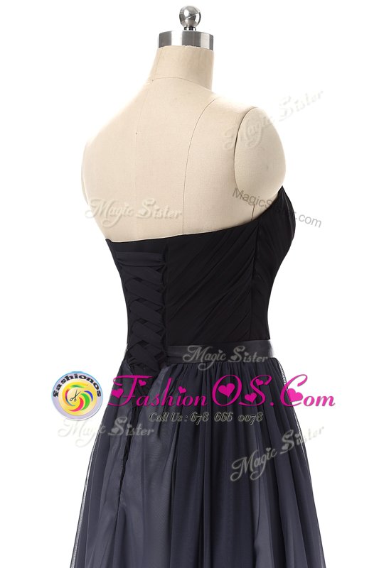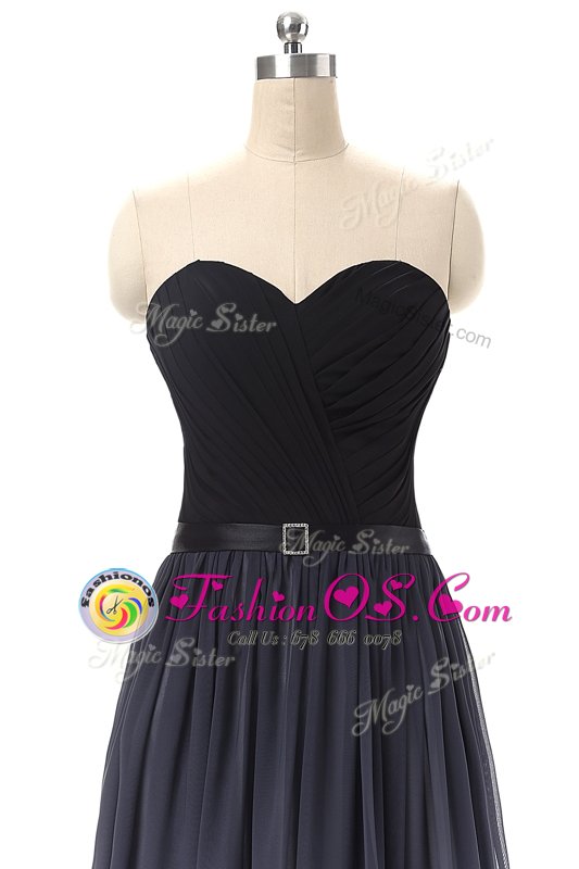 Lovely Black Lace Up Sweetheart Belt Prom Evening Gown Chiffon Sleeveless