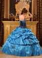Lovely Blue Quinceanera Dress Straps Taffeta Appliques Ball Gown