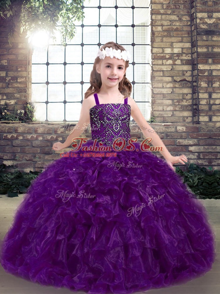 Home >  Special Occasion Dresses >  Lovely Little Girl Pageant Dresses > Lovely Eggplant Purple Lace Up Girls Pageant Dresses Beading and Ruffles Sleeveless Floor Length