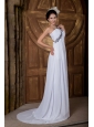 Home >  Wedding Dresses >  Latest Wedding Dresses > Lovely Empire One Shoulder Wedding Dress Chiffon Appliques Brush Train