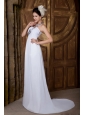 Lovely Empire One Shoulder Wedding Dress Chiffon Appliques Brush Train