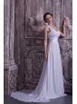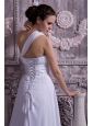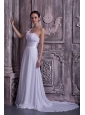 Lovely Empire One Shoulder Wedding Dress Chiffon Ruch Court Train