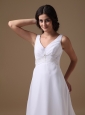 Lovely Empire V-neck Beach Wedding Dress Chiffon Beading Brush Train