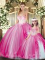 Lovely Fuchsia Lace Up Quince Ball Gowns Beading Sleeveless Floor Length