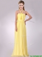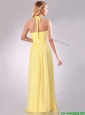 Lovely Halter Top Chiffon Ruched Long Bridesmaid Dress in Yellow