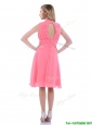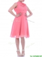 Lovely High Neck Handcrafted Flowers Bridesmaid Dress with Open Back