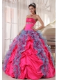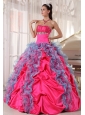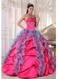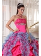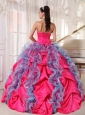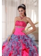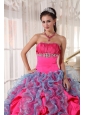 Home >  Quinceanera Dresses >  Fashionable Quinceanera Dresses > Lovely Hot Pink and Aqua Blue Quinceanera Dress Strapless Organza and Taffeta Beading and Ruffles Ball Gown