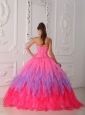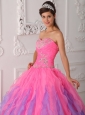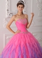 Lovely Hot Pink Quinceanera Dress Sweetheart Organza Beading and Ruch Ball Gown