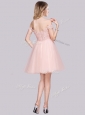 Home >  Prom Dresses >  Modest Prom Dresses > Lovely Laced Off the Shoulder Baby Pink Prom Dress in Tulle
