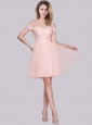 Lovely Laced Off the Shoulder Baby Pink Prom Dress in Tulle