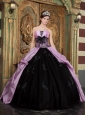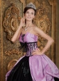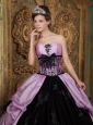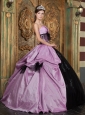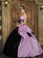 Home >  Quinceanera Dresses >  Pretty Quinceanera Dresses > Lovely Lavender and Black Quinceanera Dress Strapless Taffeta Appliques Ball Gown