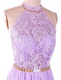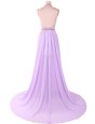Lovely Lavender Backless Lace Prom Evening Gown Brush Train Sleeveless