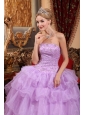 Lovely Lavender Quinceanera Dress Strapless Organza Beading Ball Gown