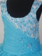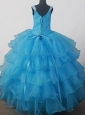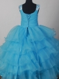 Lovely Light Blue Scoop Neckline Appliques Decorate Flower Girl Pagaent Dress