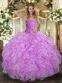 Lovely Lilac Ball Gown Prom Dress Military Ball and Sweet 16 and Quinceanera with Beading and Ruffles Sweetheart Sleeveless Lace Up