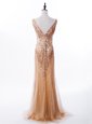 Home >  Special Occasion Dresses >  Celebrity Dresses > Lovely Mermaid Square Sleeveless Satin and Tulle Celebrity Style Dress Beading and Sequins Brush Train Zipper