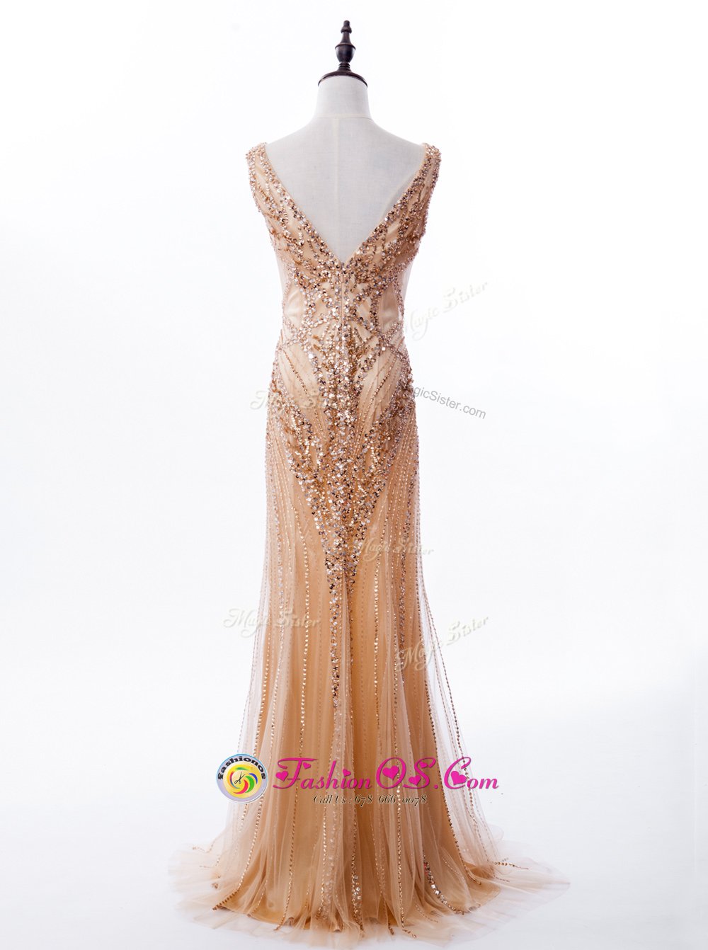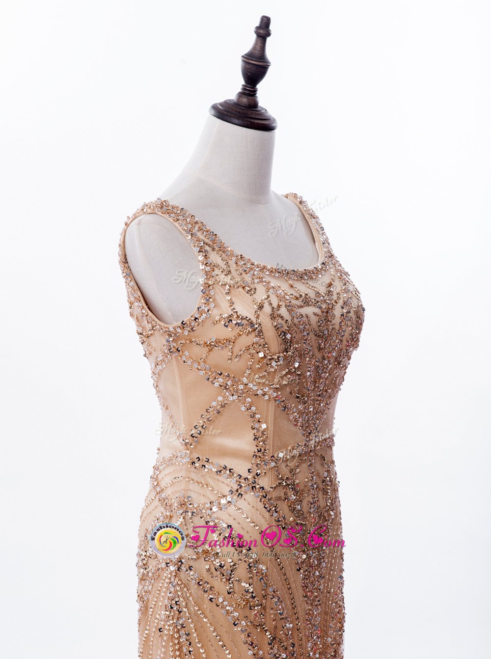Lovely Mermaid Square Sleeveless Satin and Tulle Celebrity Style Dress Beading and Sequins Brush Train Zipper