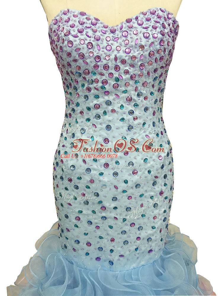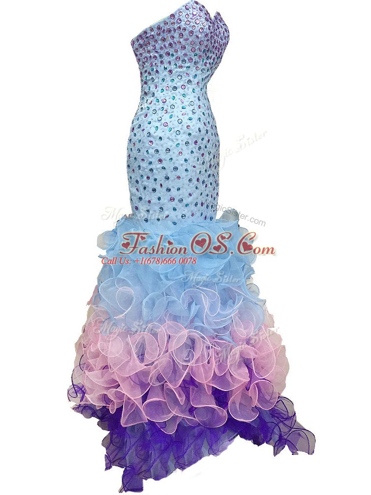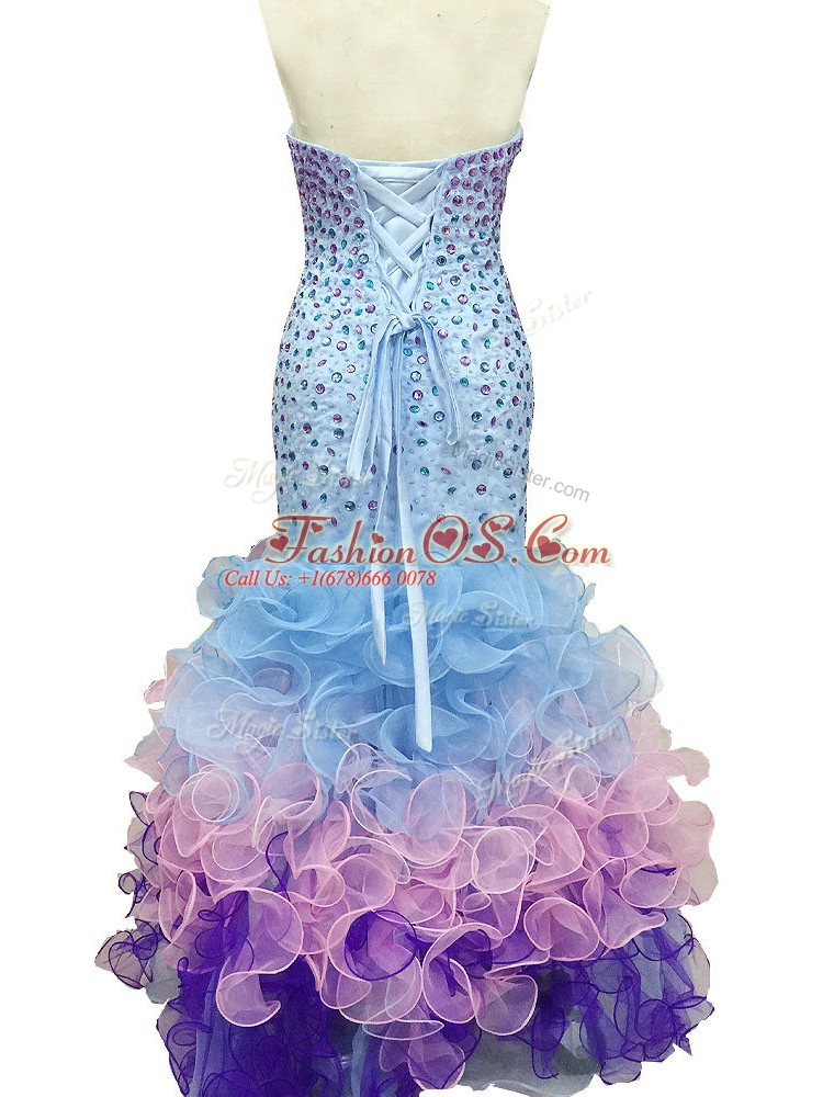 Lovely Multi-color Mermaid Sweetheart Sleeveless Organza Floor Length Lace Up Beading and Ruffles Prom Party Dress