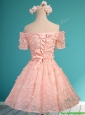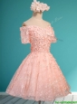 Lovely Off the Shoulder Short Sleeves Prom Dresses  with Appliques and Beading