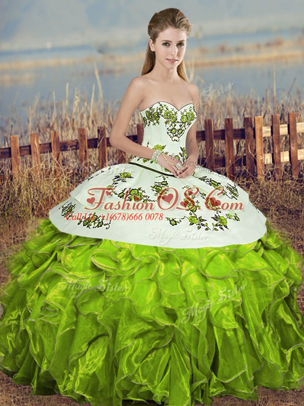 Lovely Olive Green Sleeveless Organza Lace Up Ball Gown Prom Dress for Military Ball and Sweet 16 and Quinceanera