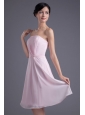 Lovely Pink Empire Strapless Knee-length Chiffon Ruching Prom Dress