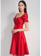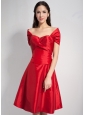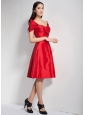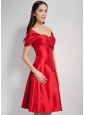 Lovely Red A-line Off The Shoulder Bridesmaid Dress Knee-length Taffeta