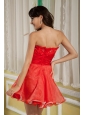 Lovely Red A-line / Princess Cocktail Dress Strapless Organza Hand Made Flowers Mini-length