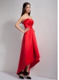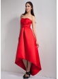 Home >  Bridesmaid Dresses >  Elegant Bridesmaid Dresses > Lovely Red A-line Strapless Appliques Bridesmaid Dress High-low Satin