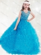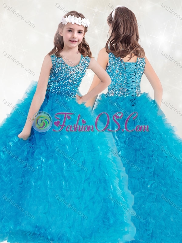 Lovely Scoop Teal Mini Quinceanera  Dress with  Beading and Ruffles