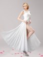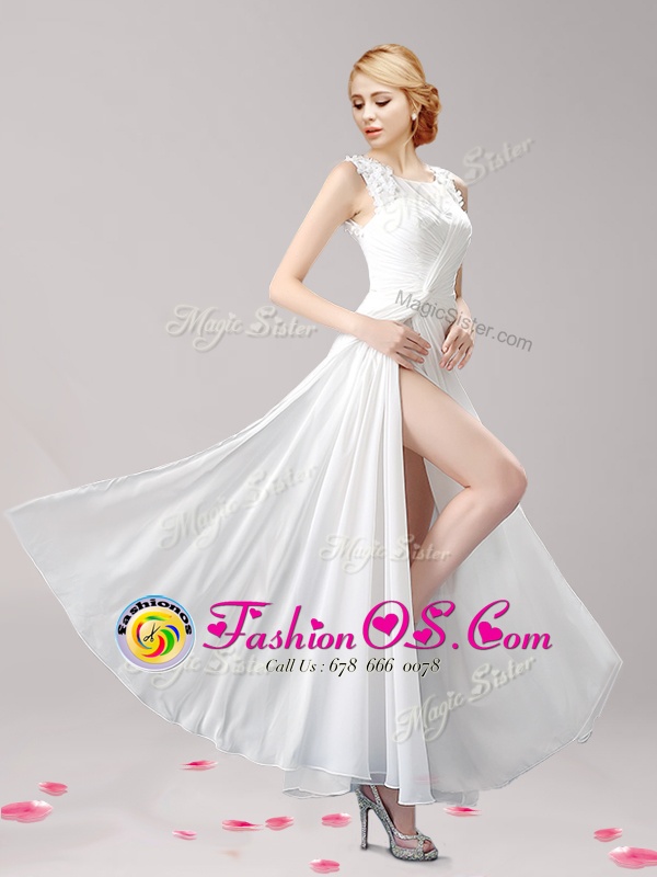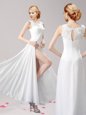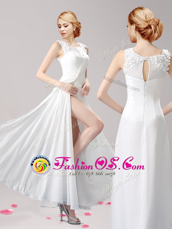 Home >  Special Occasion Dresses >  Homecoming Dresses > Lovely Scoop White Empire Appliques Homecoming Gowns Zipper Chiffon Sleeveless Floor Length