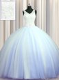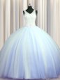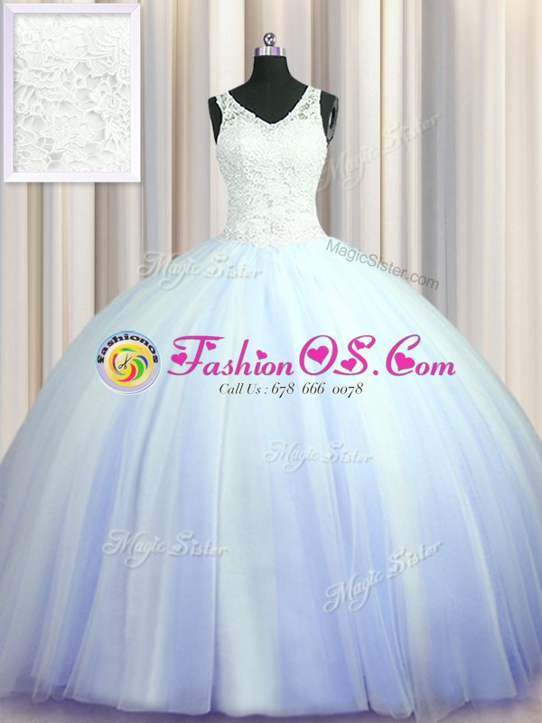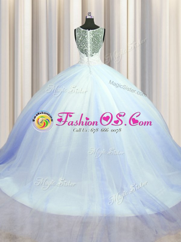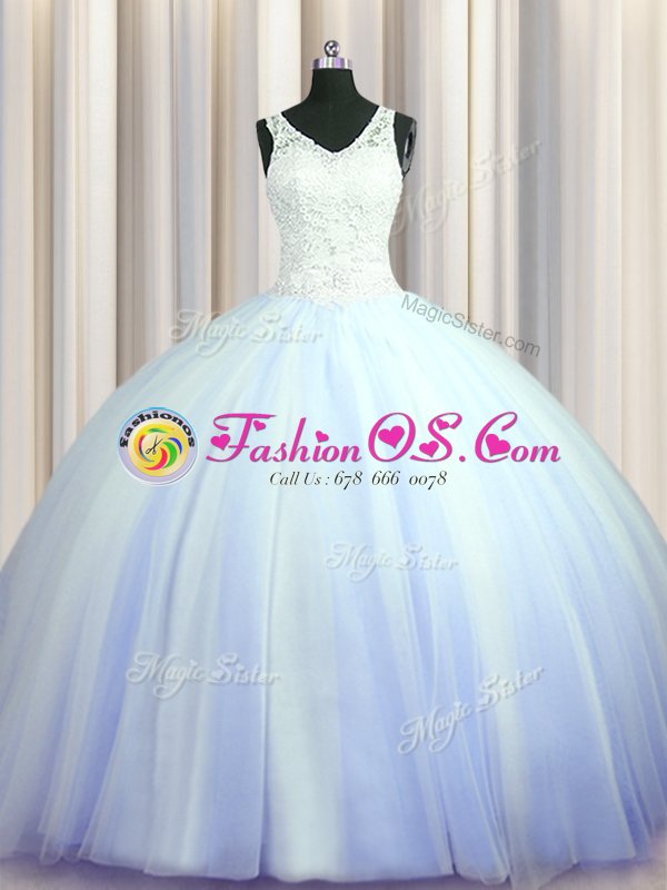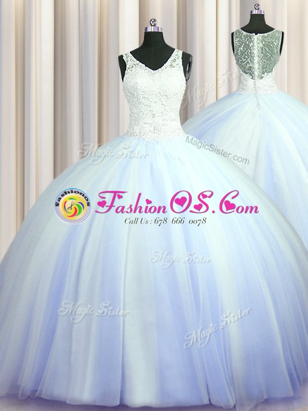 Home >  Quinceanera Dresses >  Fast Delivery Quinceanera Dresses > Lovely See Through Zipper Up Light Blue V-neck Zipper Beading and Appliques Sweet 16 Quinceanera Dress Brush Train Sleeveless