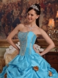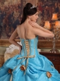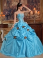 Home >  Quinceanera Dresses >  Popular Quinceanera Dresses > Lovely Sky Blue Quinceanera Dress Strapless Taffeta Beading and Hand Made Flowers Ball Gown