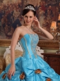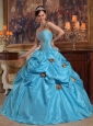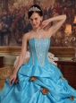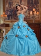 Lovely Sky Blue Quinceanera Dress Strapless Taffeta Beading and Hand Made Flowers Ball Gown