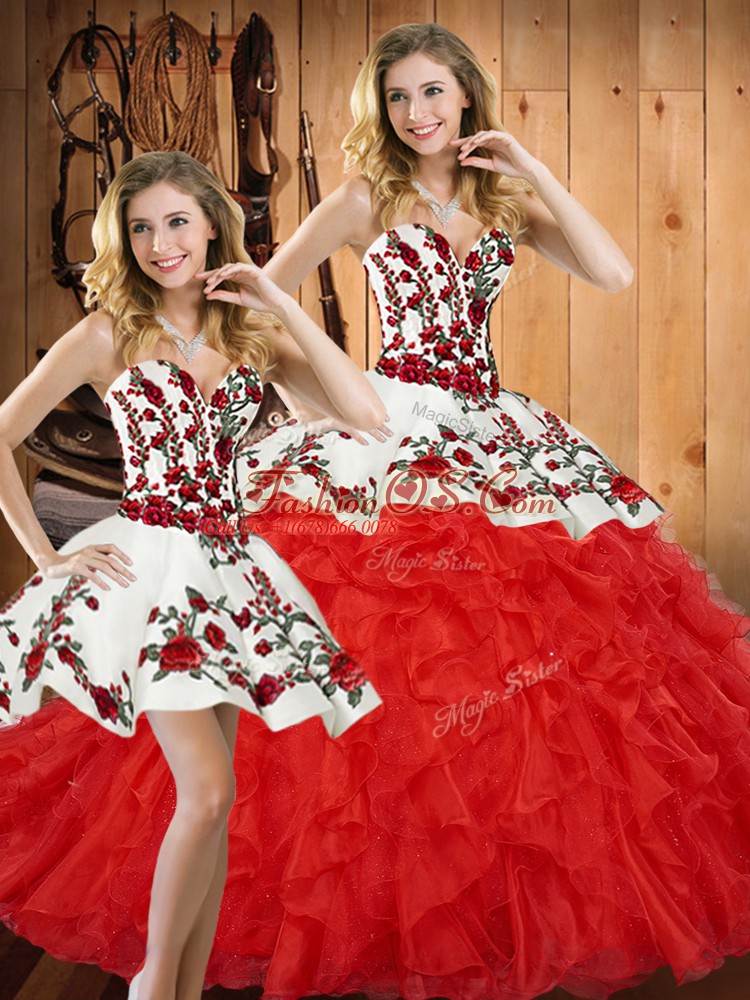 Lovely Sleeveless Lace Up Floor Length Embroidery and Ruffles Quinceanera Dresses