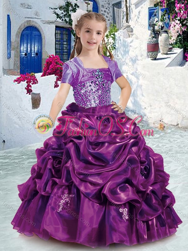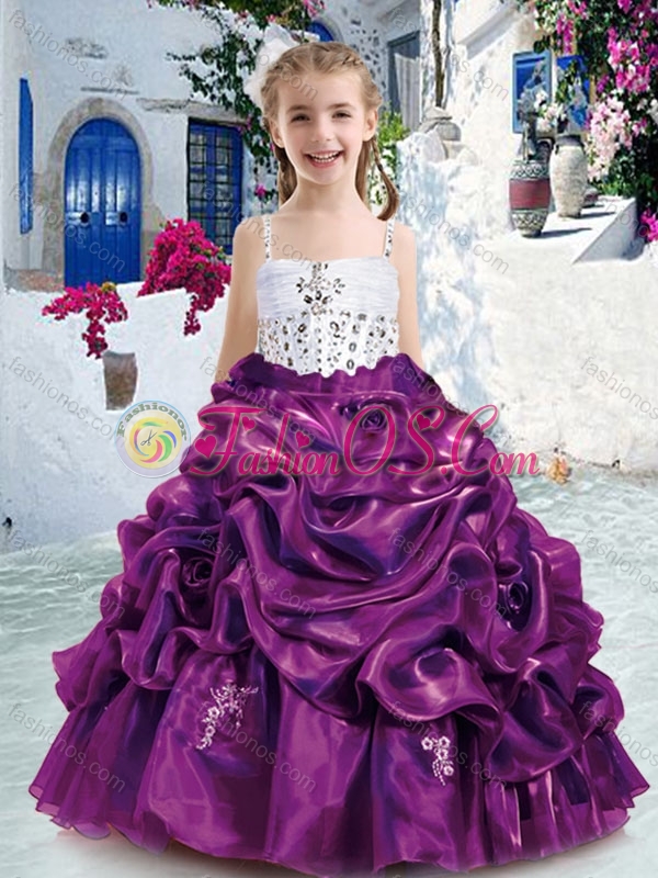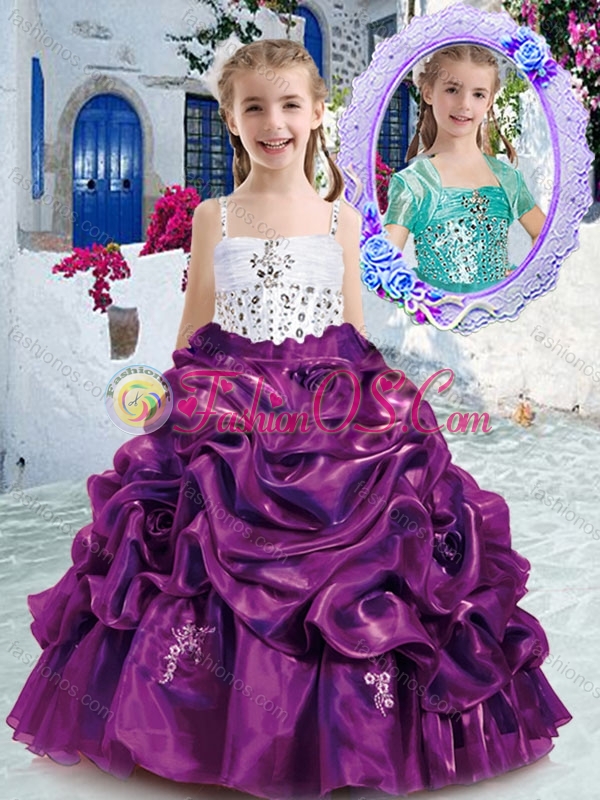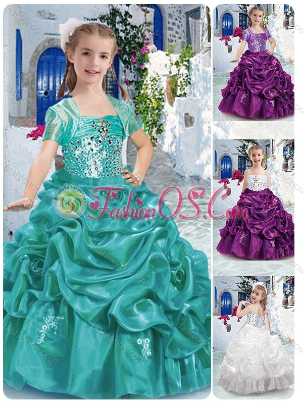 Lovely Spaghetti Straps Little Girl Pageant Dresses with Beading and Bubles