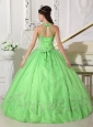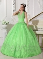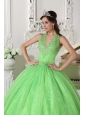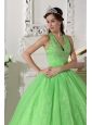 Home >  Shop By Color >  Quinceanera Dresses by Color >  Spring Green Quinceanera Dresses > Lovely Spring Green Quinceanera Dress Halter Taffeta and Organza Appliques Ball Gown