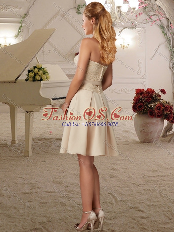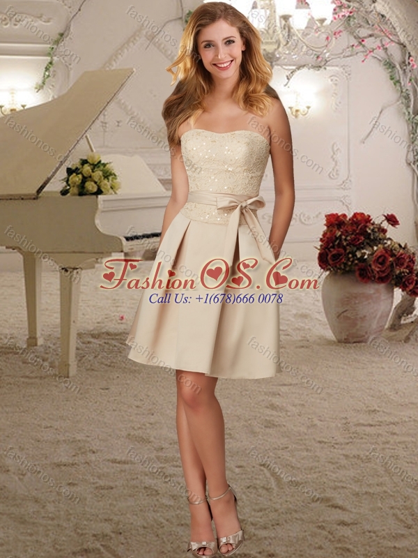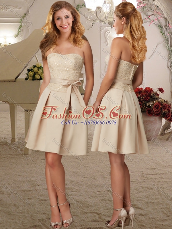Lovely Strapless Champagne Cheap Dama Dress with Beading and Sashes