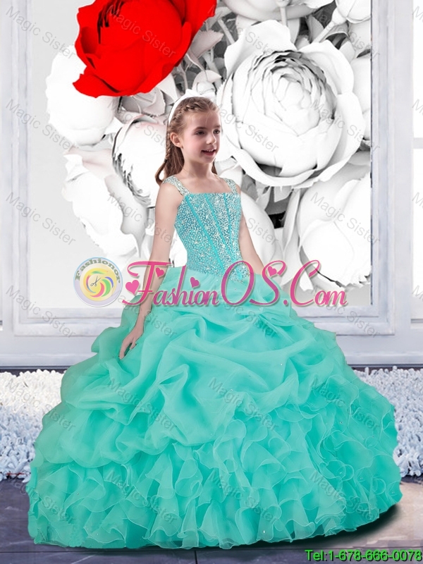 Lovely Straps Turquoise Organza  Mini Quinceanera Dresses for 2016