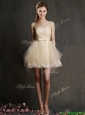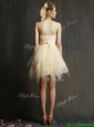 Lovely Sweetheart Short Champagne Bridesmaid Dress with Belt and Ruffles