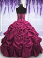 Lovely Taffeta Sleeveless Floor Length Sweet 16 Dresses and Beading and Appliques and Pick Ups