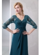 Home >  Special Occasion Dresses >  Mother of the Bride Dresses > Lovely Turquoise Column V-neck Lace Mother Of The Bride Dress Floor-length Chiffon