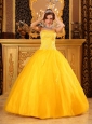 This special designed two straps quinceanera dress features delicate appliques on the bodice. The puffy skirt is created by fashionable pick ups. Beautiful hand-made flowers scattered on the whole skirt to make the dress gorgeous. Owning it, realize your sweet dream.