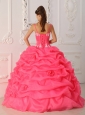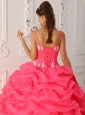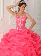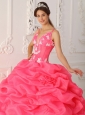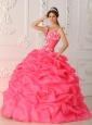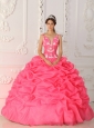 Lovely Watermelon Quinceanera Dress Straps Satin and Organza Appliques Ball Gown