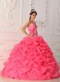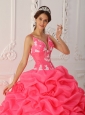Home >  Quinceanera Dresses >  Popular Quinceanera Dresses > Lovely Watermelon Quinceanera Dress Straps Satin and Organza Appliques Ball Gown