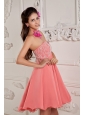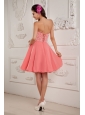 Lovely Watermelon Red A-line / Princess Prom / Homecoming Dress Sweetheart Mini-length Chiffon Beading