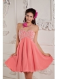 Home >  Special Occasion Dresses >  Homecoming Dresses > Lovely Watermelon Red A-line / Princess Prom / Homecoming Dress Sweetheart Mini-length Chiffon Beading